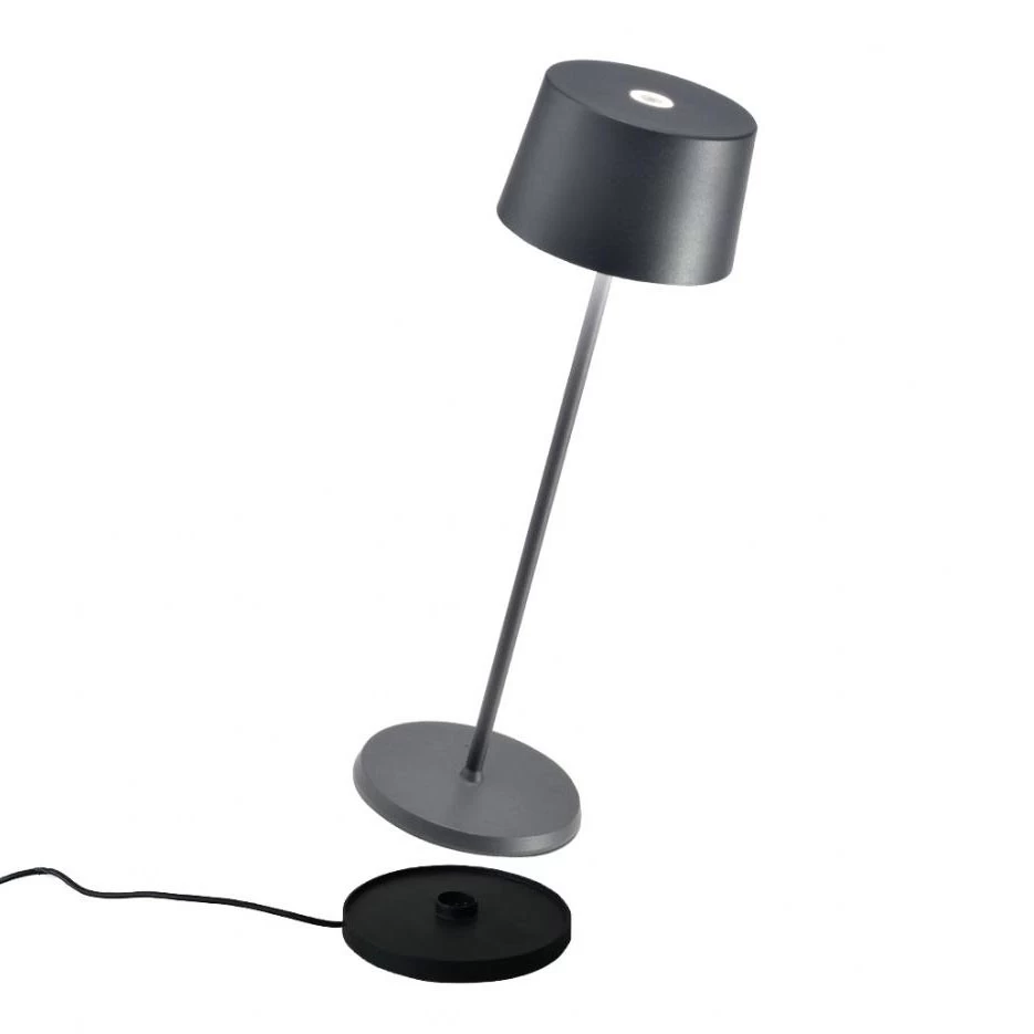Akku LED-Tischlampe, Zafferano Olivia Pro, Grau – 35,5cm