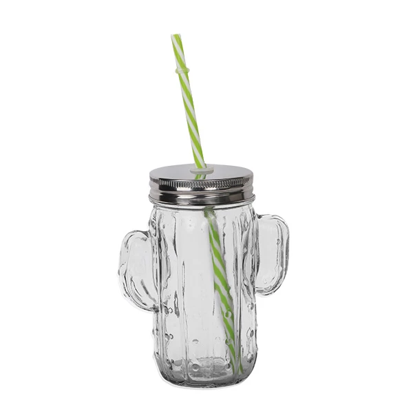 Drinking Jar, Kaktusglas Mit Deckel Und Strohhalm – 414ml
